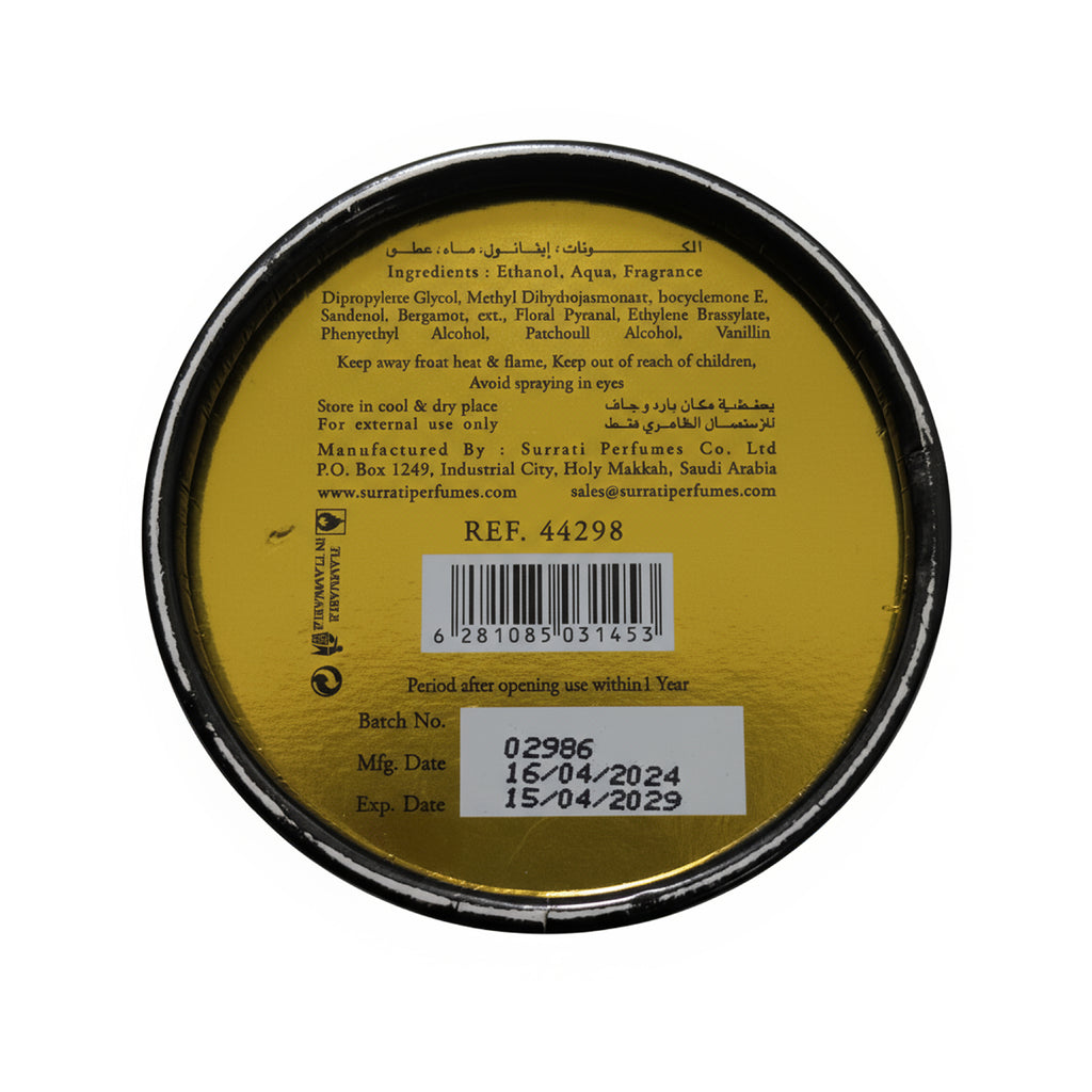 Introducing Surrati Ambre Noir Extrait De Parfum Spray. A deep, rich fragrance designed for those who seek sophisticated evening wear. This captivating 100ml Extrait De Parfum features warm Amber, complemented by hints of smoky Oud and Spices. Ideal for making a profound statement, Ambre Noir leaves a lasting impression with its rich and sophisticated aroma.