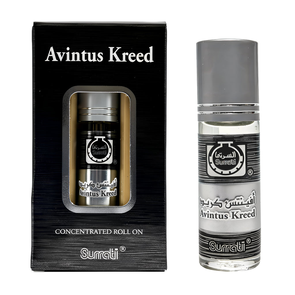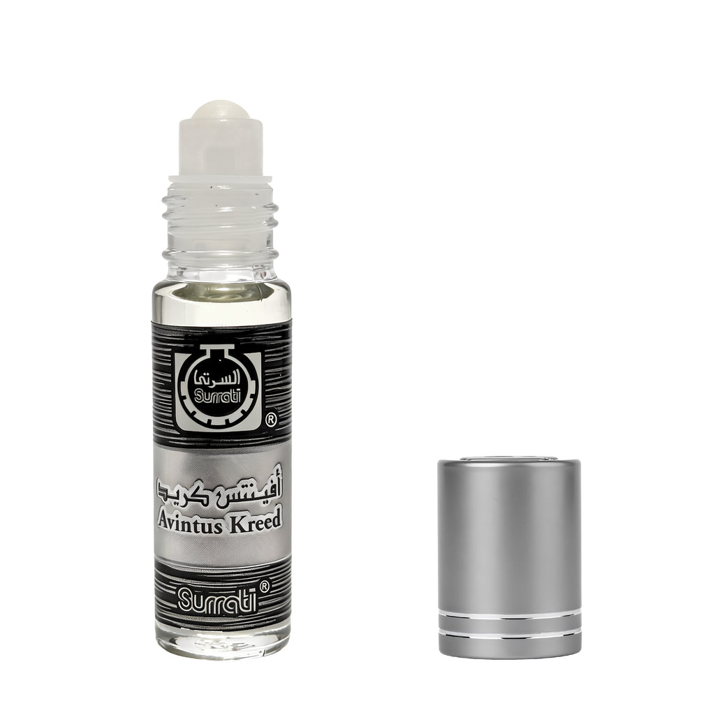 Introducing Our Avintus Kreed Roll-On Attar. A 6ml concentrated perfume oil from Surrati, a Middle East's leading perfume manufacturer. This high-quality attar is an exotic, long-lasting fragrance that is free from alcohol. Its unique blend of perfume oils is suitable for men and women, offering a traditional Arabian and oriental scent.