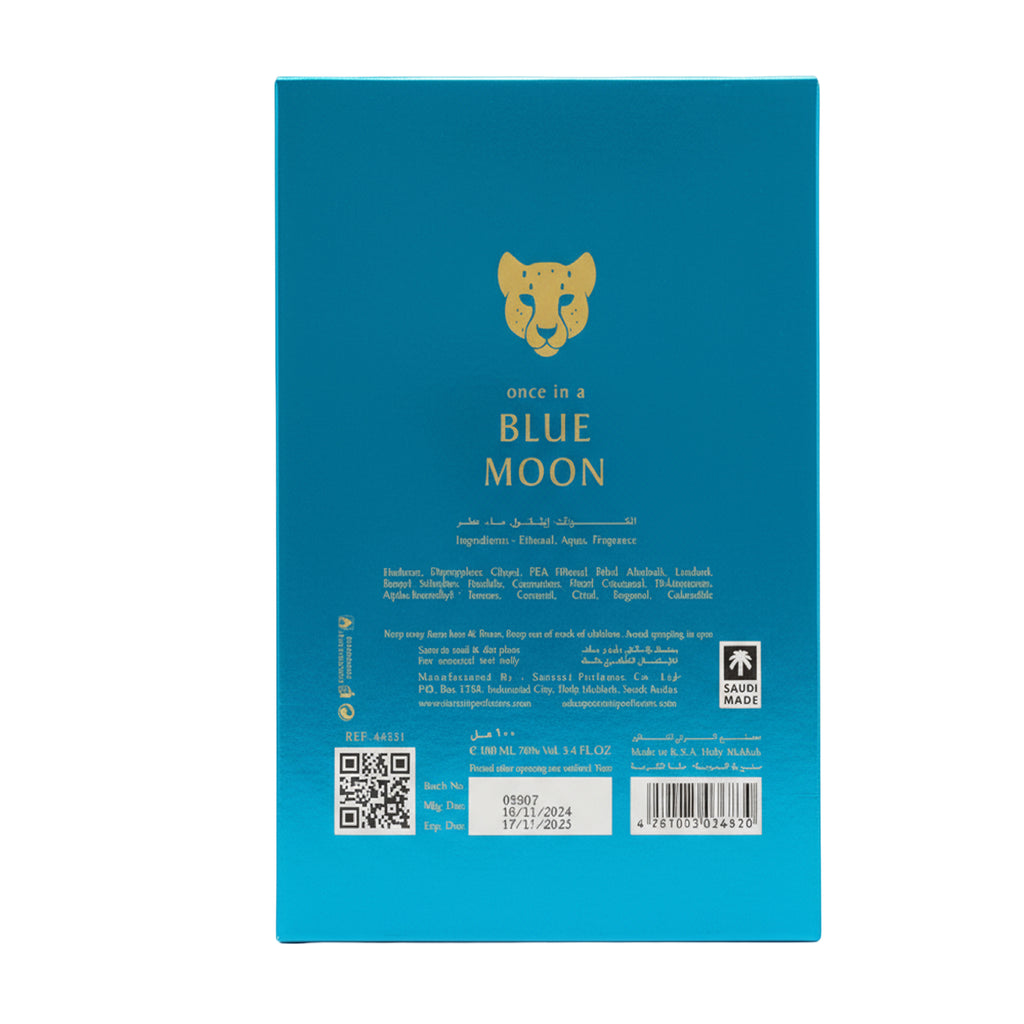 Introducing Surrati Blue Moon Eau De Parfum. A fresh and invigorating 100ml unisex fragrance with an irresistible hint of fruity sweetness. This captivating EDP is perfect for anyone who wants to smell great all day long, and is sure to make you feel confident and sexy. The scent transitions from a bright citrus opening to a romantic floral heart, settling into a warm, sensual base.