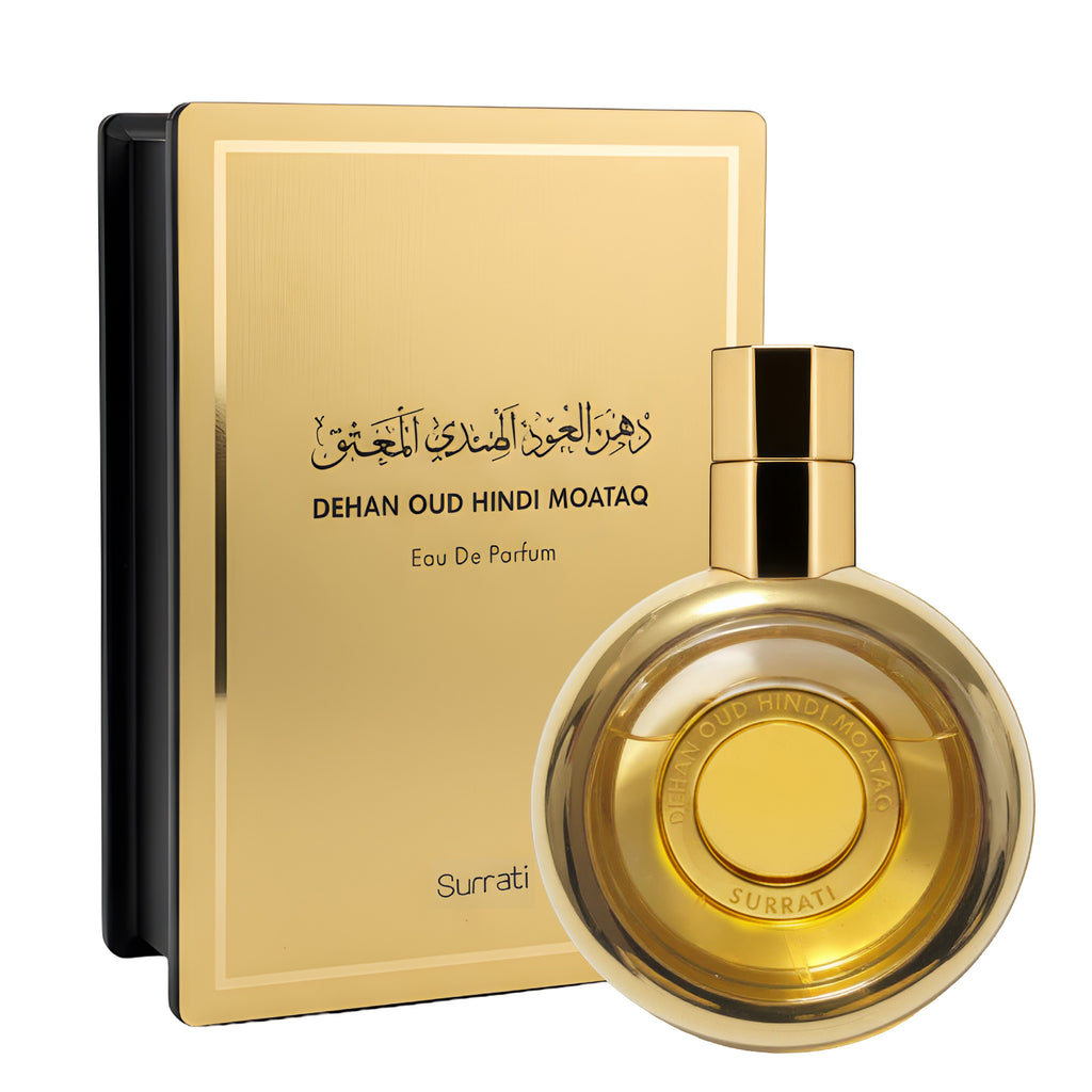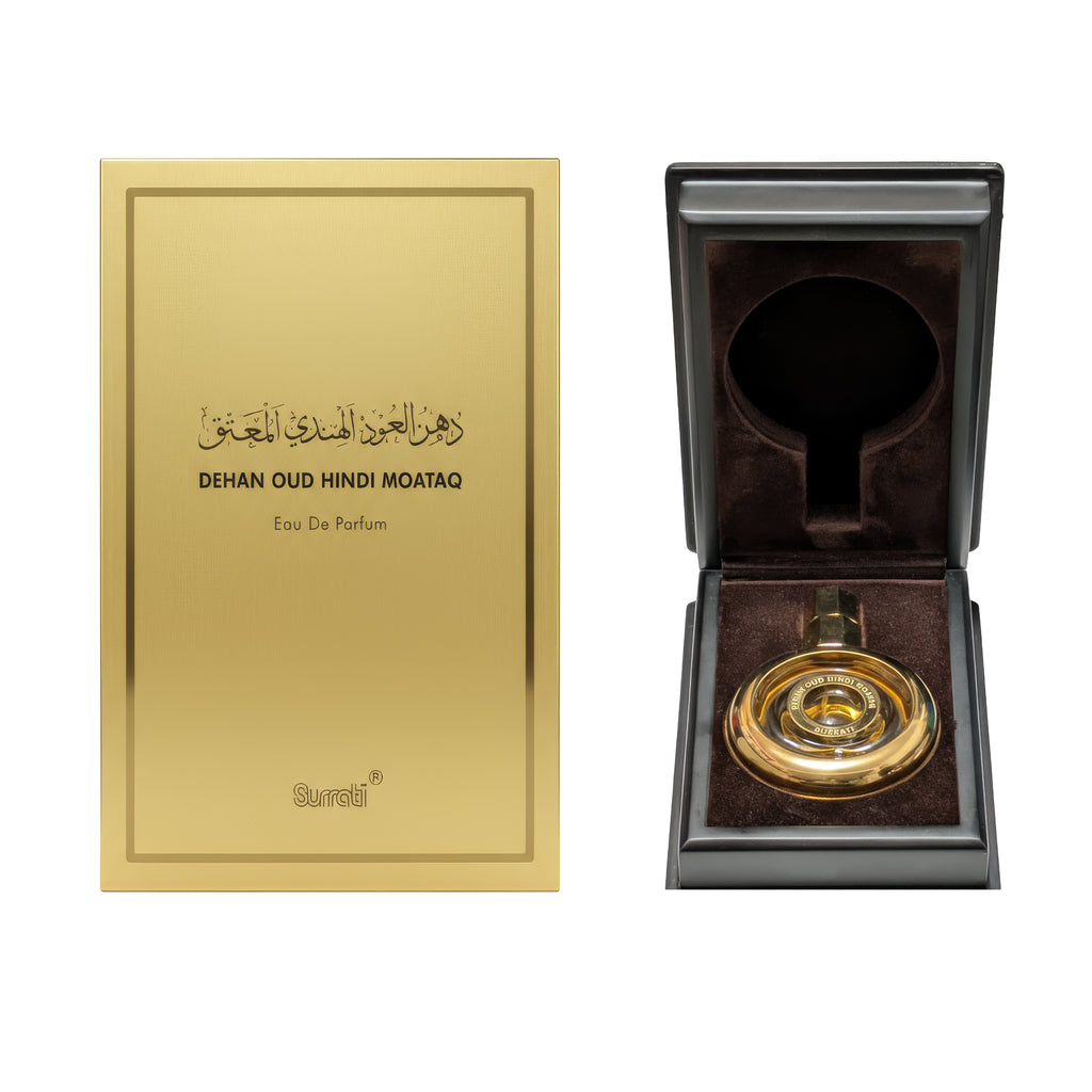 Dehan Oud Hindi Moataq is a luxurious olfactory journey, starting with dark, smoky intensity, gaining a contrasting freshness in the middle, and settling into a smooth, enduring woody base.
