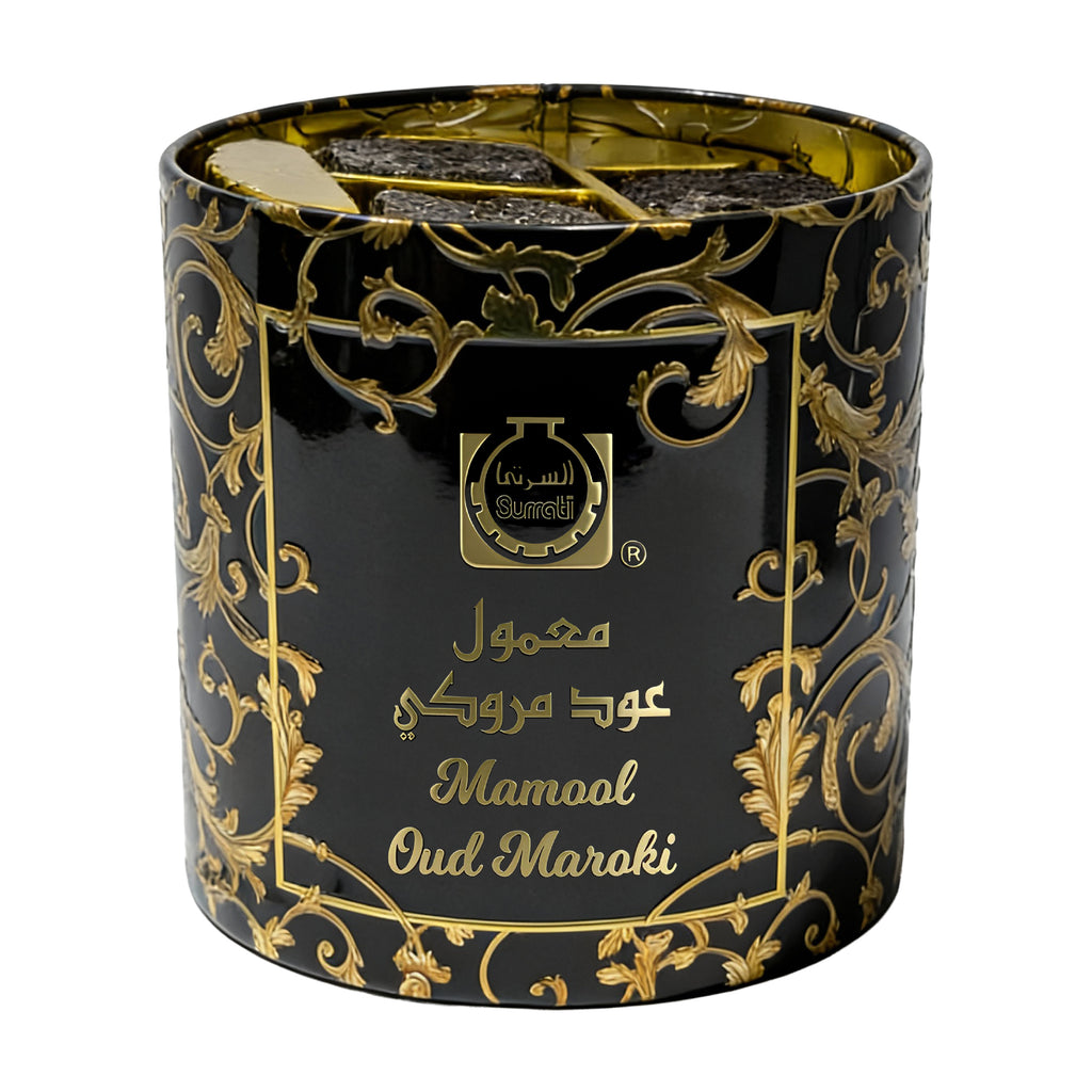 Introducing Our Maroki Mamool Oud. An 80g mamool oud by Surrati that captures the essence of authentic Maroki oud, delivering a fragrance that is rich, deep, and enchanting