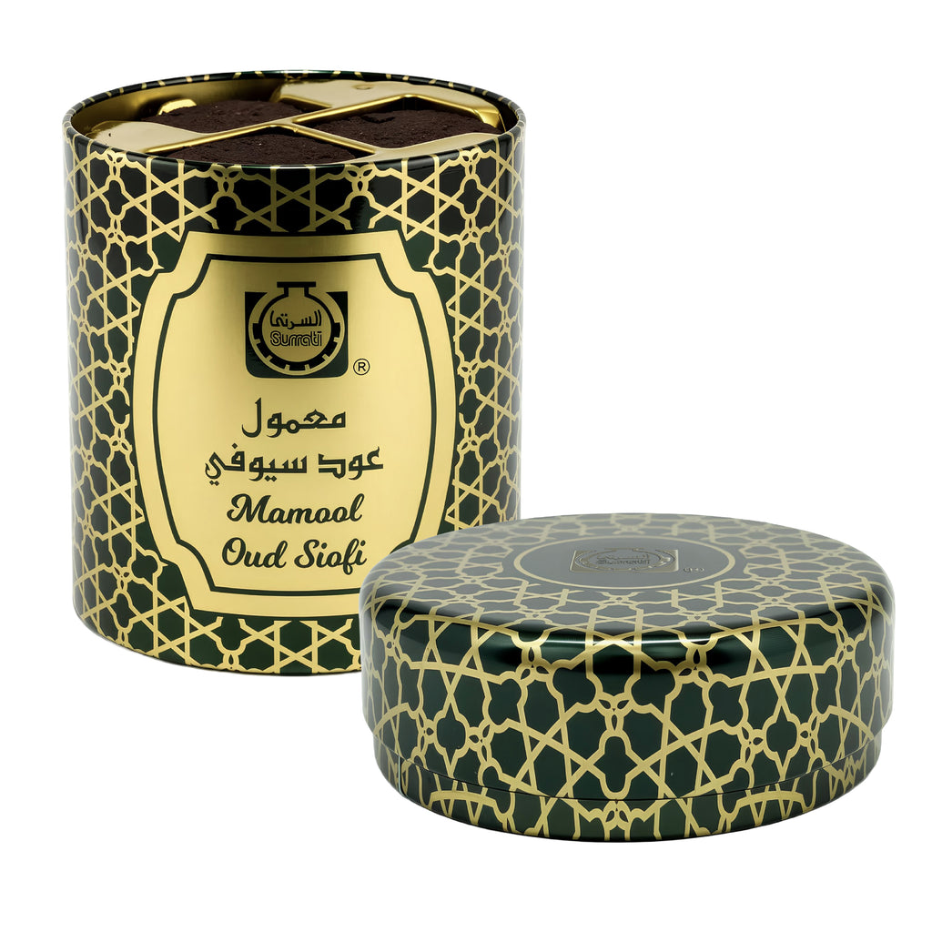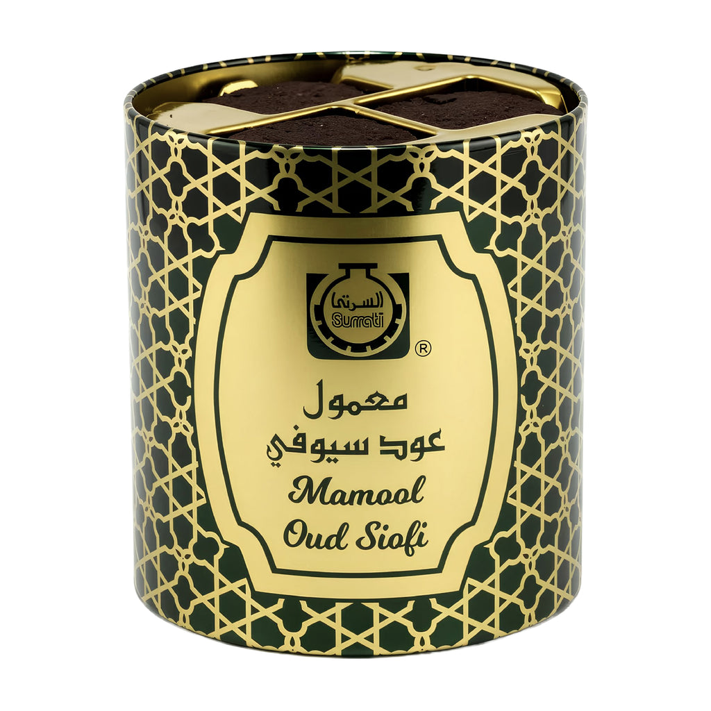 Introducing Our Siofi Mamool Oud Bakhoor. An 80g luxurious incense by Surrati that embodies a classic oriental tradition. The term "Siofi" typically refers to an authentic oud profile known for its deep, slightly sweet, and refined woody character.