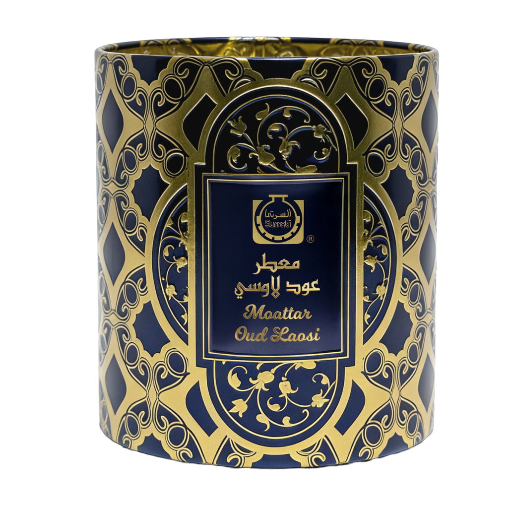 Introducing Our Moattar Oud Laosi Bakhoor. An 80g luxurious incense by Surrati that showcases the rich and rare aroma of Laotian oud, sourced from the agarwood trees of Laos in Southeast Asia. This dark brown bakhoor delivers a deep, woody, and fragrant scent, prized for its intensity and sophistication.