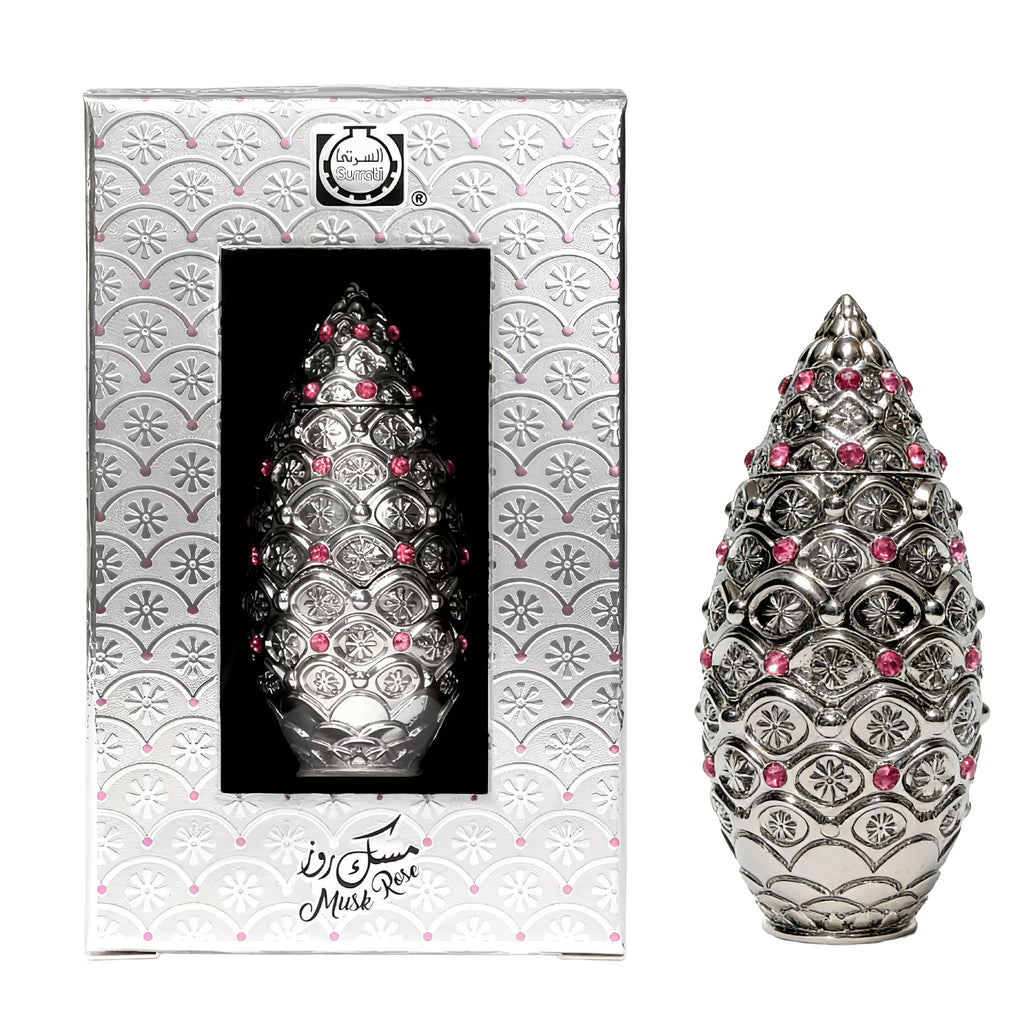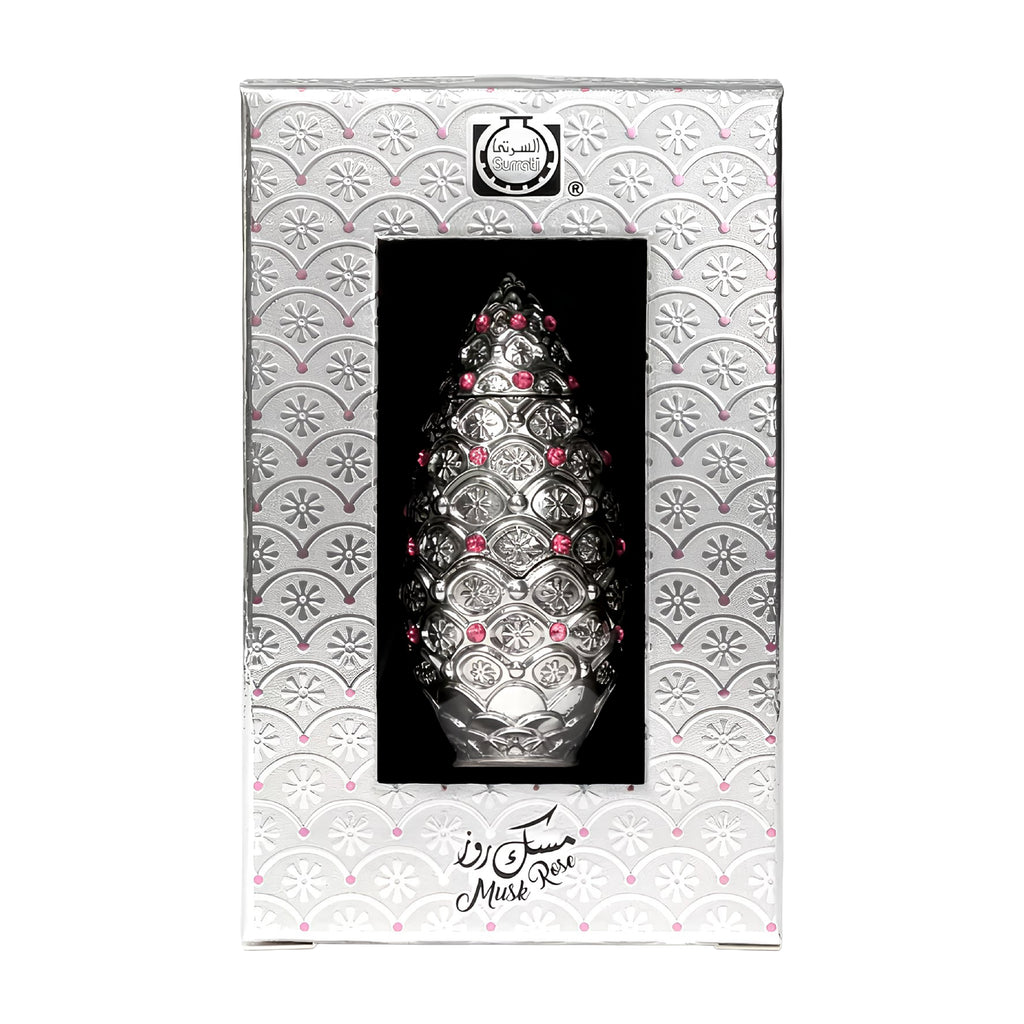 Introducing Our Musk Rose Concentrated Perfume Oil. A 12ml attar that is a refined and luxurious perfume oil by Surrati. It harmoniously blends the soft, sensual warmth of musk with the romantic, elegant essence of rose.