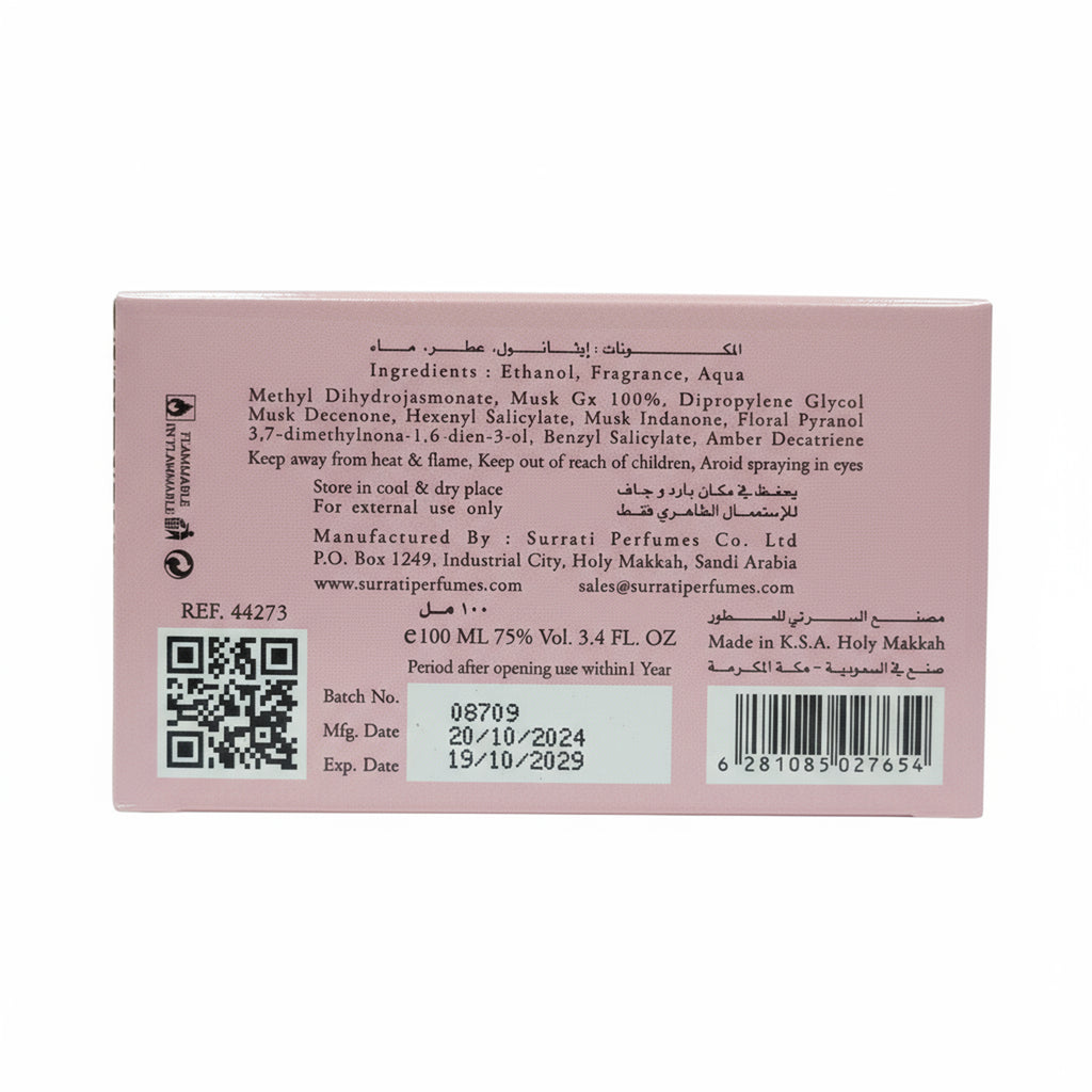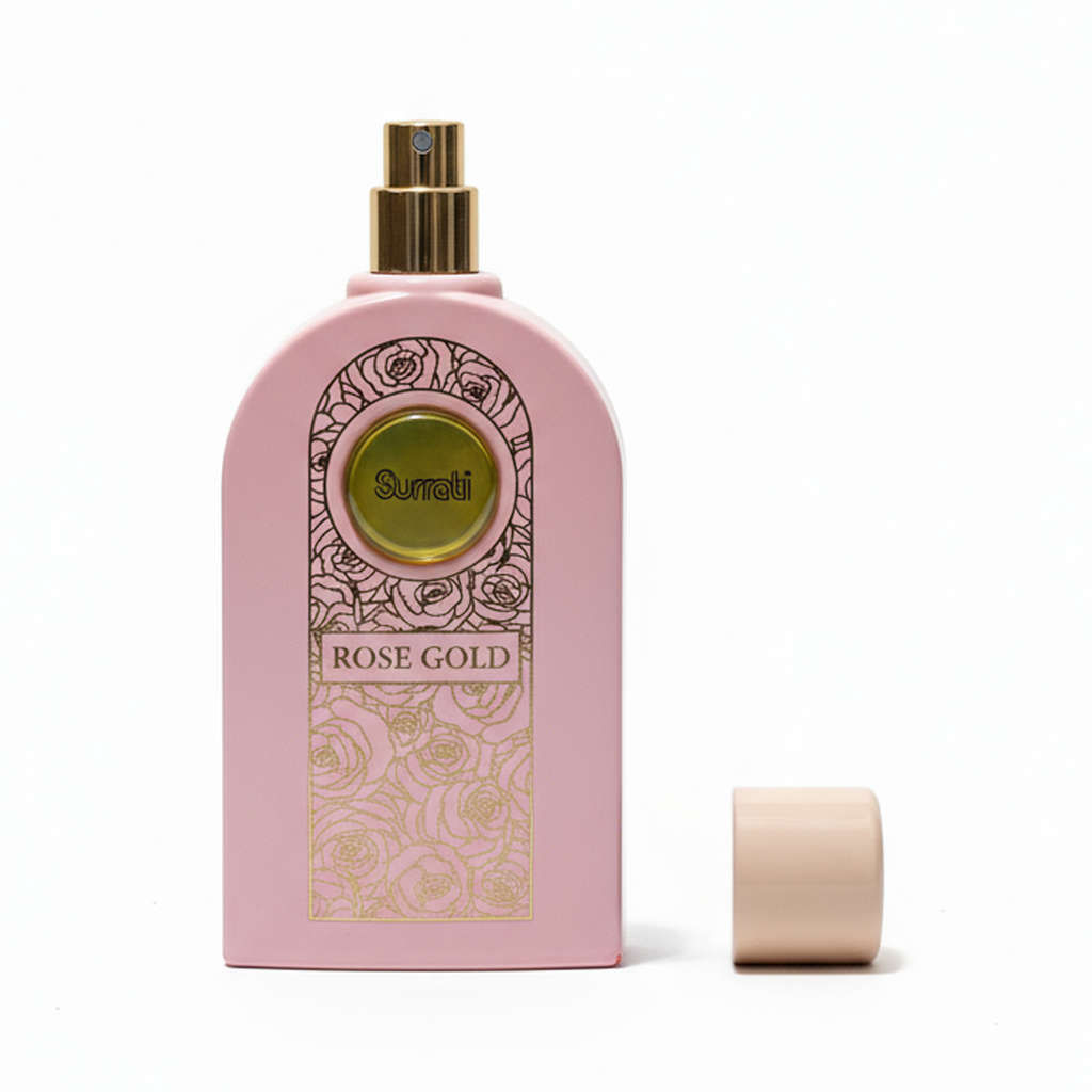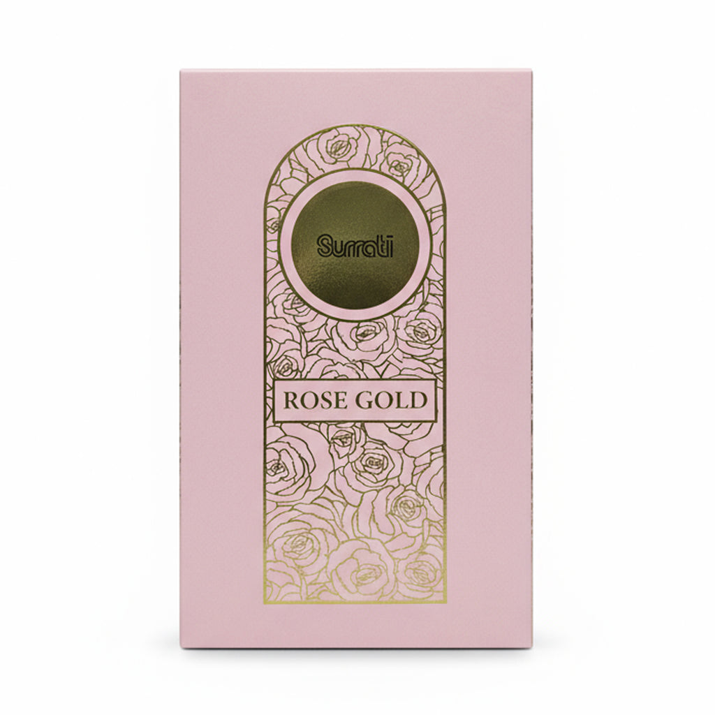Introducing Surrati Rose Gold Eau De Parfum. A luxurious and elegant 100ml unisex fragrance that provides a rich and enchanting floral aroma. This captivating EDP is a warm and sophisticated blend, featuring inviting Warm Spicy and Earthy top notes, a deep heart of Amber and Patchouli, and a persistent base of Floral and Balsamic accords. Rose Gold is the perfect long-lasting fragrance for those who seek to envelop themselves in richness and grace.