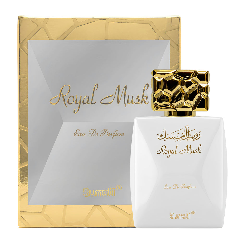 Introducing Our Royal Musk Concentrated Perfume Oil. A generous 30ml attar by Surrati that is a velvety and alluring perfume oil that embodies both softness and sensuality. Crafted around the timeless charm of musk, this luxurious attar caresses the senses with an intoxicating blend that is at once warm and inviting, yet fresh and radiant.