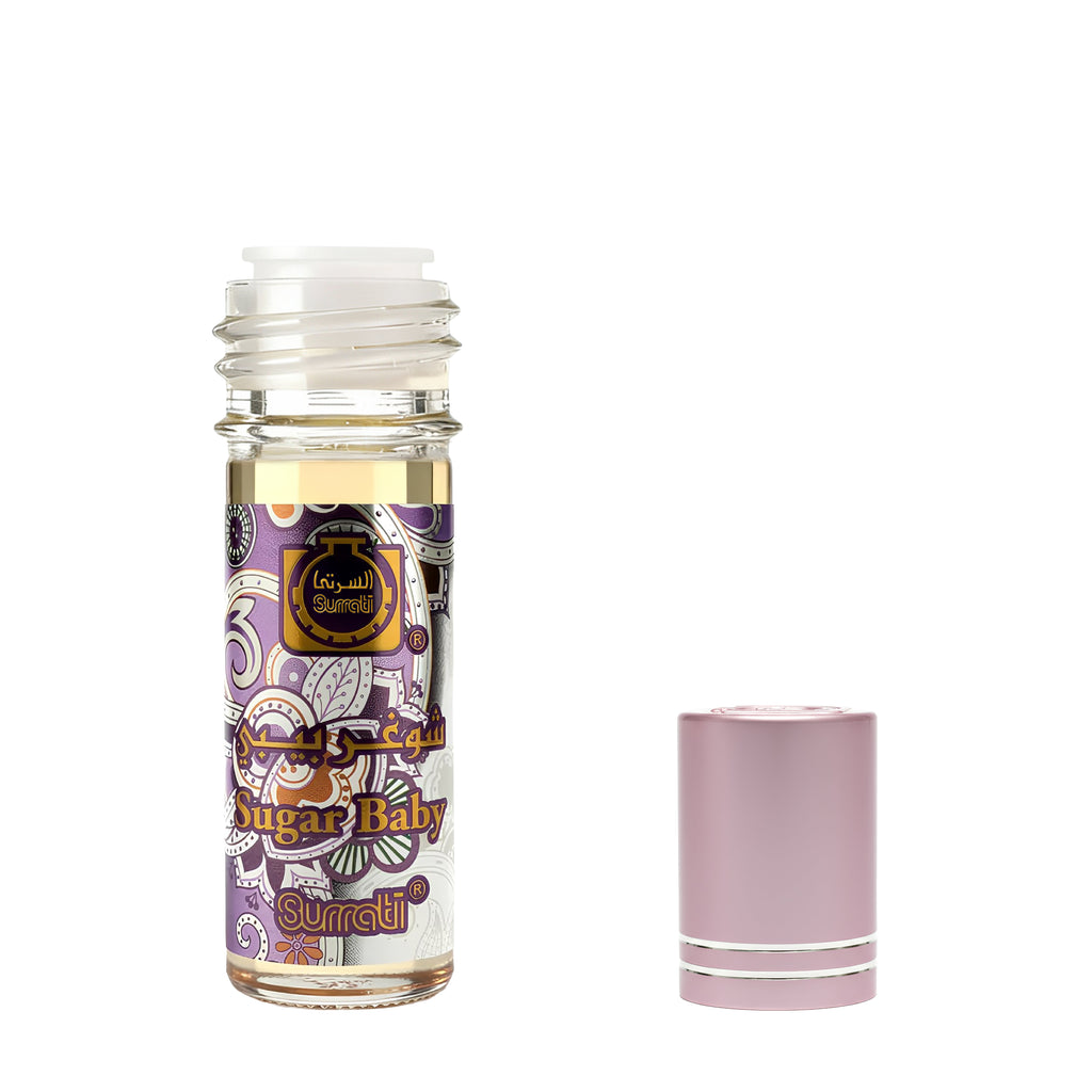 Introducing Our Sugar Baby Roll-On Attar. a playful yet elegant 6ml fragrance that balances fruity sweetness with floral charm and a warm, sensual base. This delightful attar is perfect for everyday wear or special occasions, bringing a youthful, sweet, and sophisticated touch to your presence.